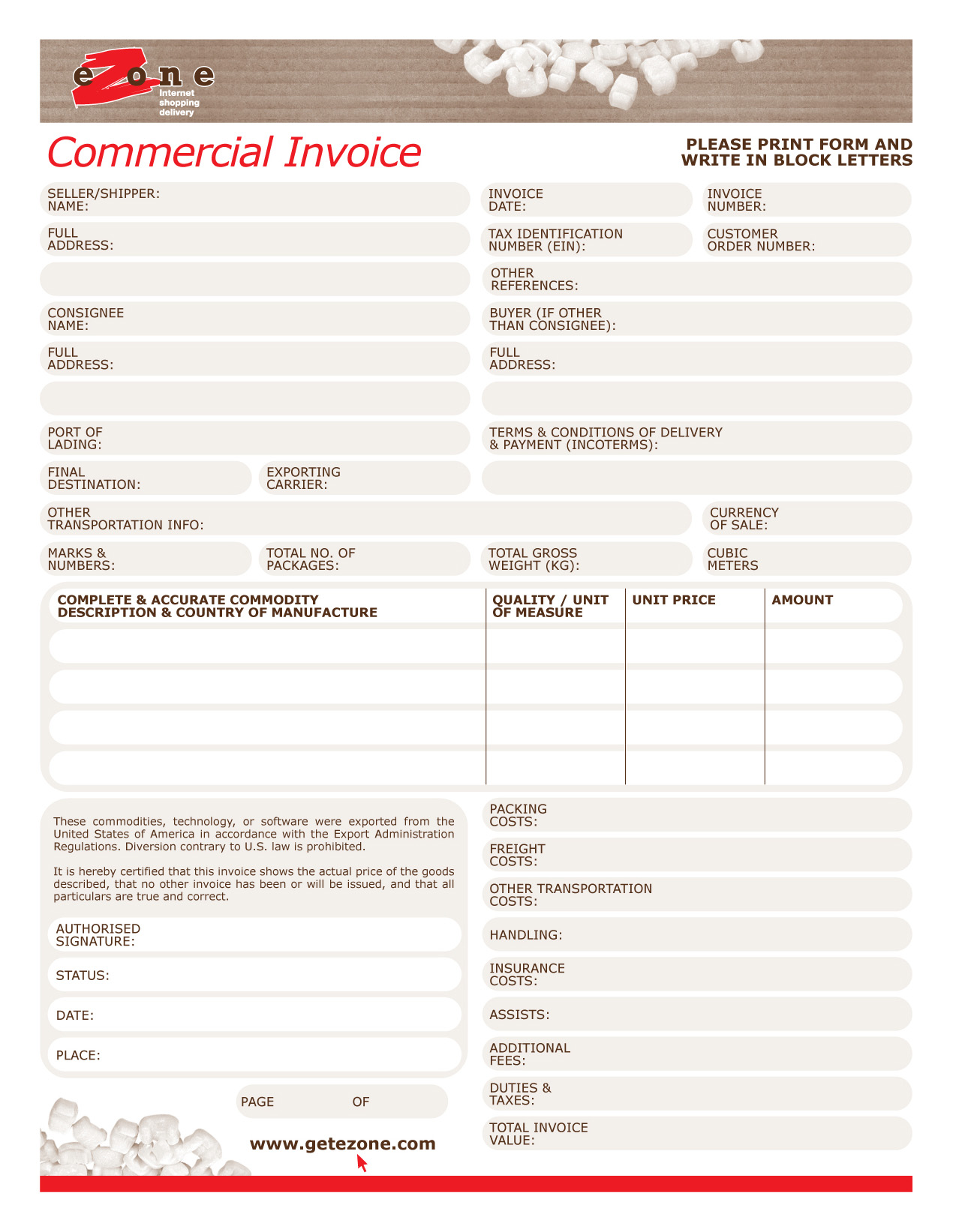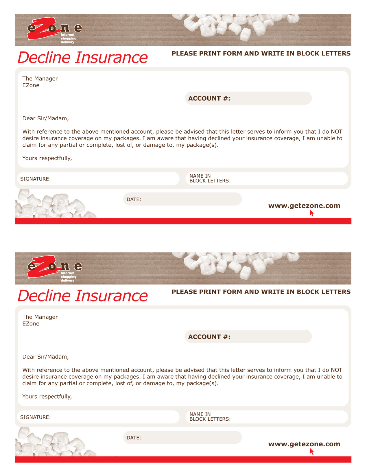 Download the forms you need for your eZone account and shipping requirements